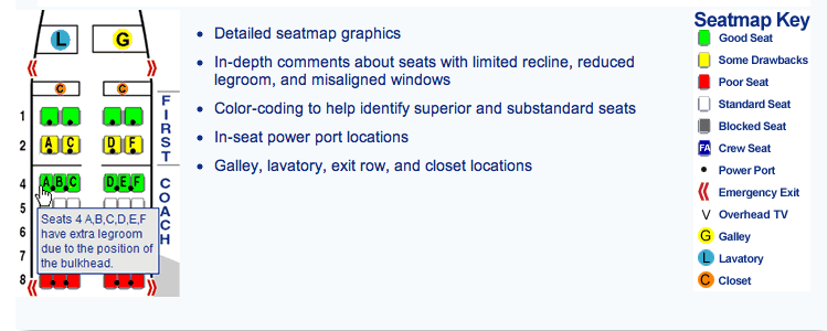 Do you want to know if you have a good seat before flying. Remember not all seats are the same. Some allow for more leg room or incline. Some are close to bathrooms. And who wants to get the dreaded middle seat. So what can you do? I have found a website that I use before EVERY FLIGHT. It is called Seat Guru. It is a free service. Here is what a sample looks like